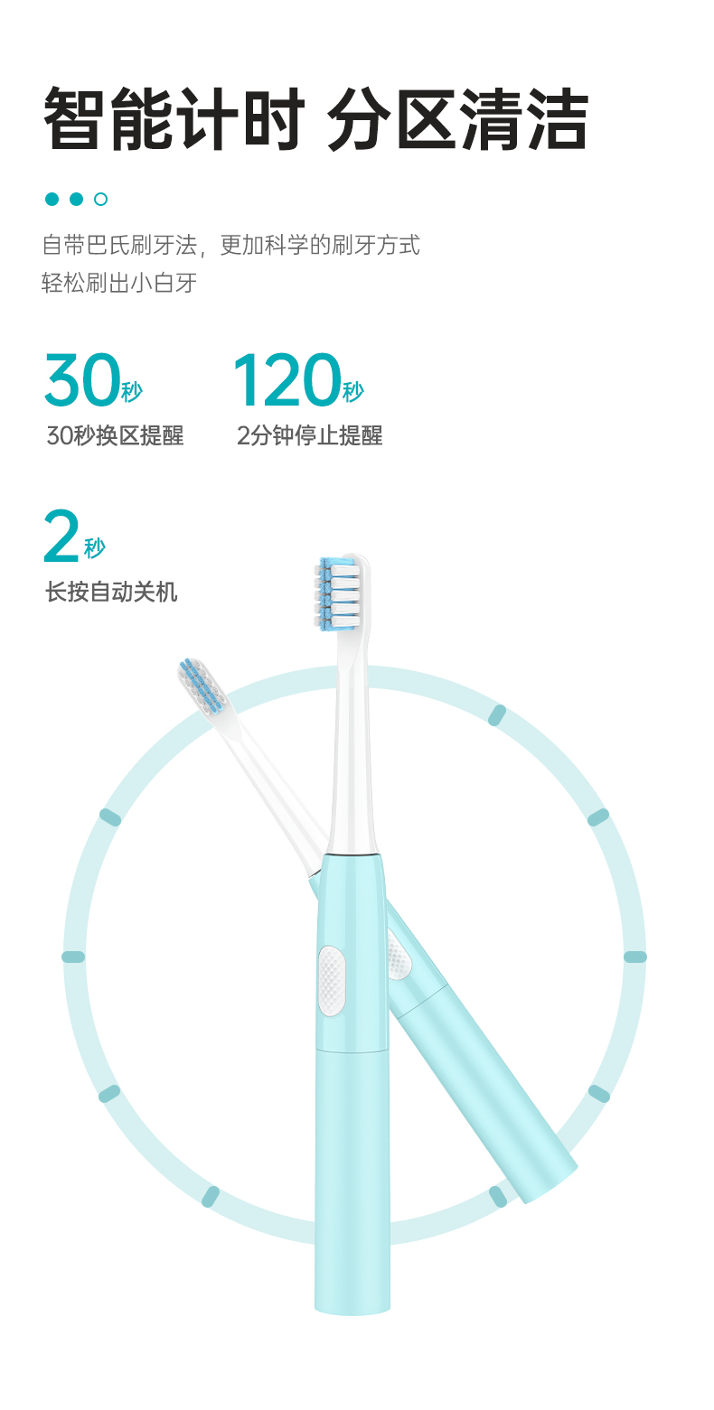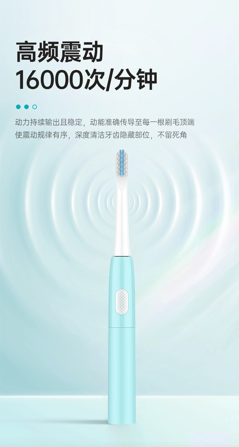 以极简设计颠覆传统,用科技重塑洁净体验,人体工程学机身如掌心艺术品,流线型弧度贴合指节,磨砂质感防滑不沾汗,一键操控,老少皆宜。告别复杂操作,轻触即启,让刷牙回归本能的舒适。